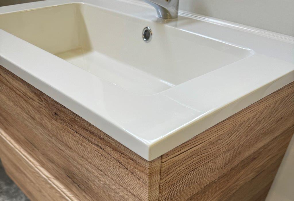 Lavabo in mineralmarmo con vasca centrale 52x30 cm con proforndita 12 cm.
